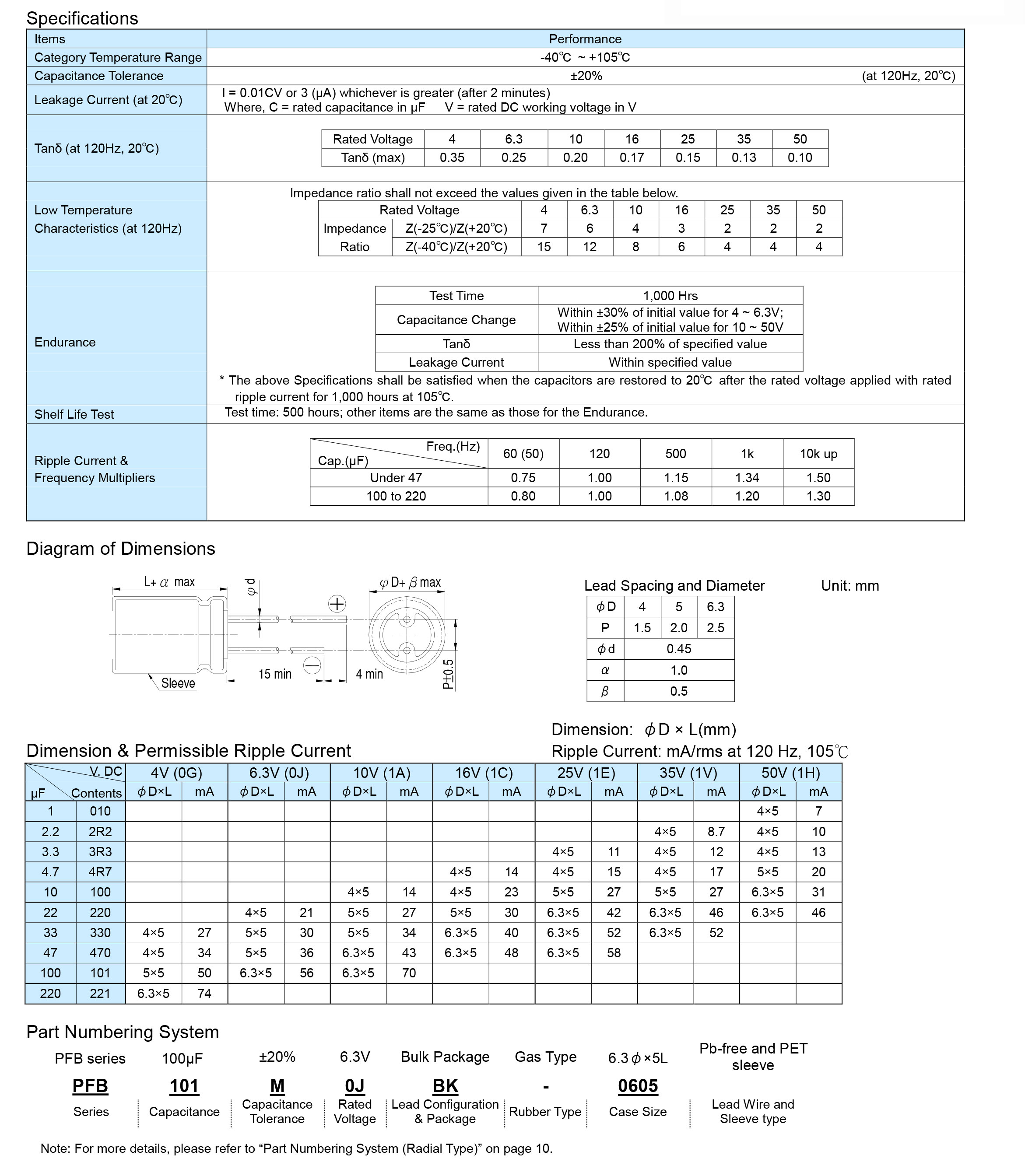 ‧105℃, 1,000 hours assured