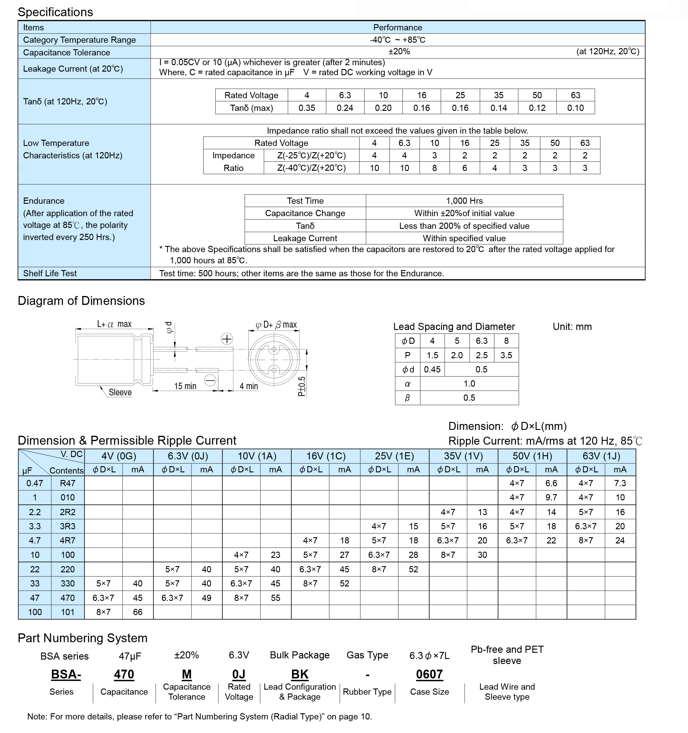 ‧85℃, 1,000 hours assured, bi-polarized series with 7mm height